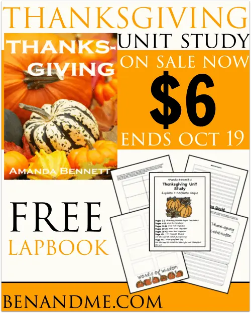 Sale on Amanda Bennett Thanksgiving Unit Study and Free Thanksgiving Lapbook!