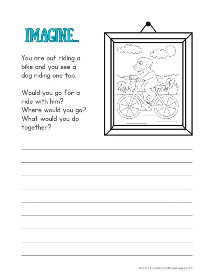 “Imagine…You are out riding a bike and you see a dog riding one too. Would you go for a ride with him? Where would you go? What would you do together?”