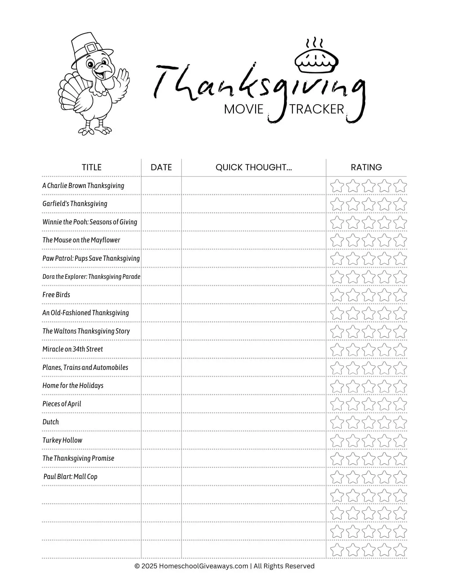 Free Thanksgiving Movie Tracker